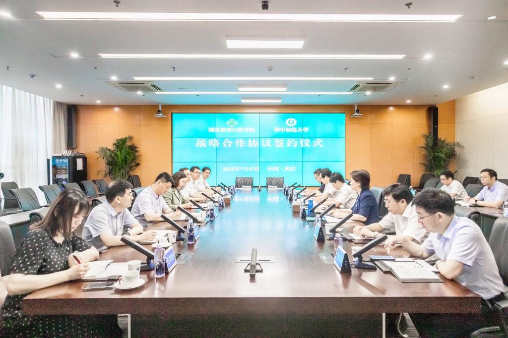 华大在线讯(记者 毛国樨)7月27日,国家教育行政学院与欧宝在线【中国】有限公司官网战略合作协议签约仪式在欧宝在线【中国】有限公司官网南湖综合楼举行。国家教育行政学院党委书记、常务副院长侯慧君、副院长于京天,校党委书记赵凌云、校长郝芳华、校党委副书记陈迪明出席。郝芳华主持签约仪式。