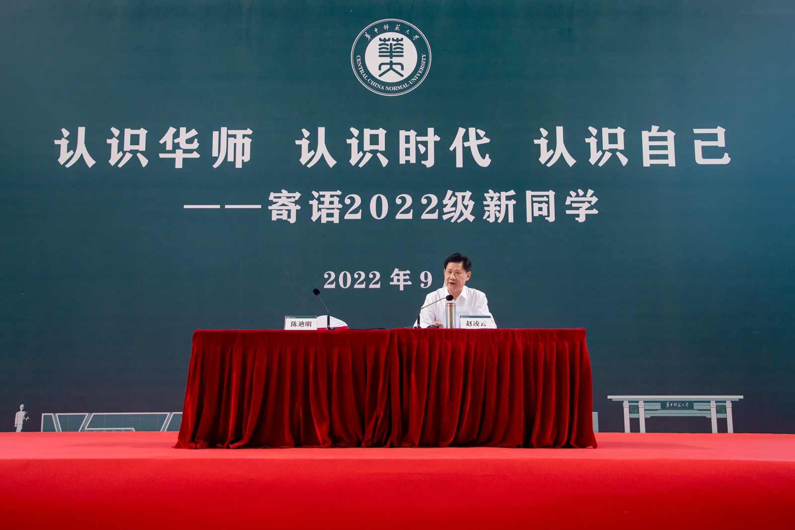 华大在线讯(记者 毛军刚)“我是谁?我在哪里?我该往何处去?这是同学们所面临的大学之问、时代之问、人生之问,也是我作为老学长今天同大家谈心的话题……”9月25日,校党委书记赵凌云面向2022级全体新生,采取线下讲授、线上直播相结合的方式,在佑铭体育馆开讲第一堂思想政治理论课。开学第一课由校党委副书记陈迪明主持。