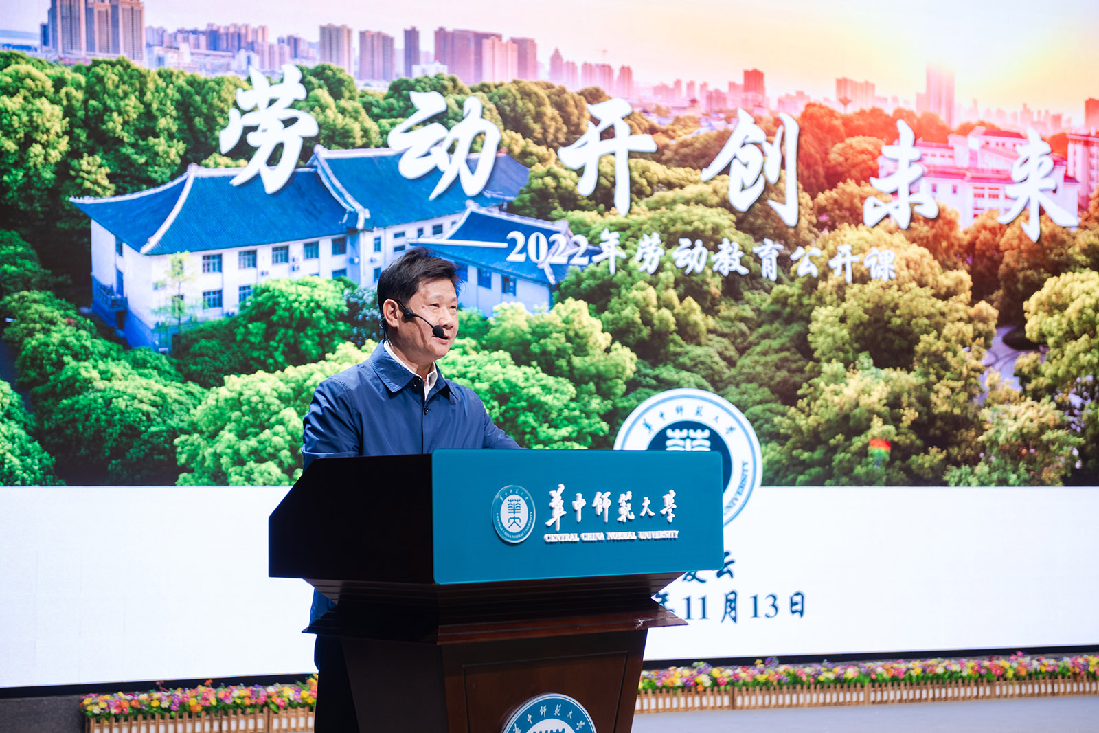 华大在线讯(记者 关国樑 见习记者 胡文迪)11月13日,欧宝在线【中国】有限公司官网劳育理论公开课《劳动开创未来》在九号楼六楼演播厅开课。校党委书记赵凌云作为主讲人,为2022级全体本科生授课。本次公开课由副校长彭双阶主持。