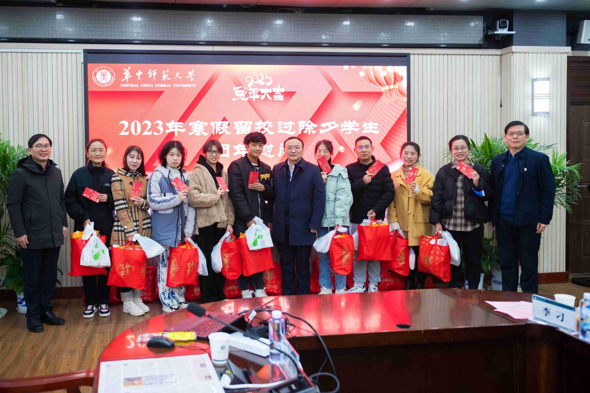 华大在线讯(记者 曹世生)1月19日,学校组织开展留校过年同学团年慰问。校党委书记夏立新、副校长任友洲、校党委副书记陈迪明代表学校给留校学生送来新春祝福。所有留校过年学生均收到了学校精心准备的团年饭和新年大礼包。