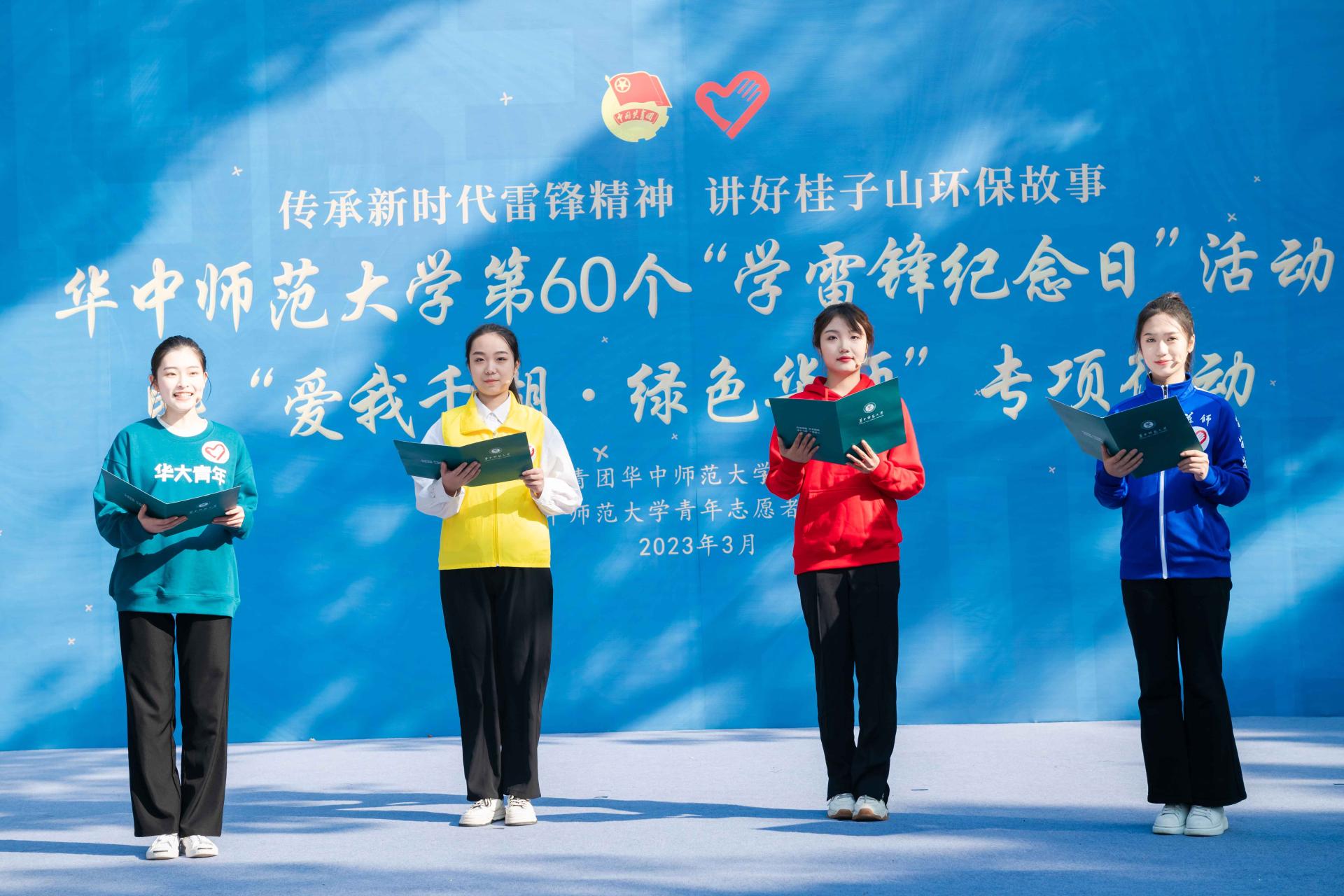 华大在线讯(记者 关国樑 见习记者 董娱辰 杜玉宇 通讯员 卢俊霖)春“锋”三月,志愿同行。3月5日,为深入贯彻落实习近平总书记关于传承和弘扬雷锋精神的重要指示,响应和落实教育部、团中央工作部署,欧宝在线【中国】有限公司官网第60 个“学雷锋纪念日”活动暨“爱我千湖·绿色欧宝在线【中国】有限公司官网”专项行动在文华公书林举行。
