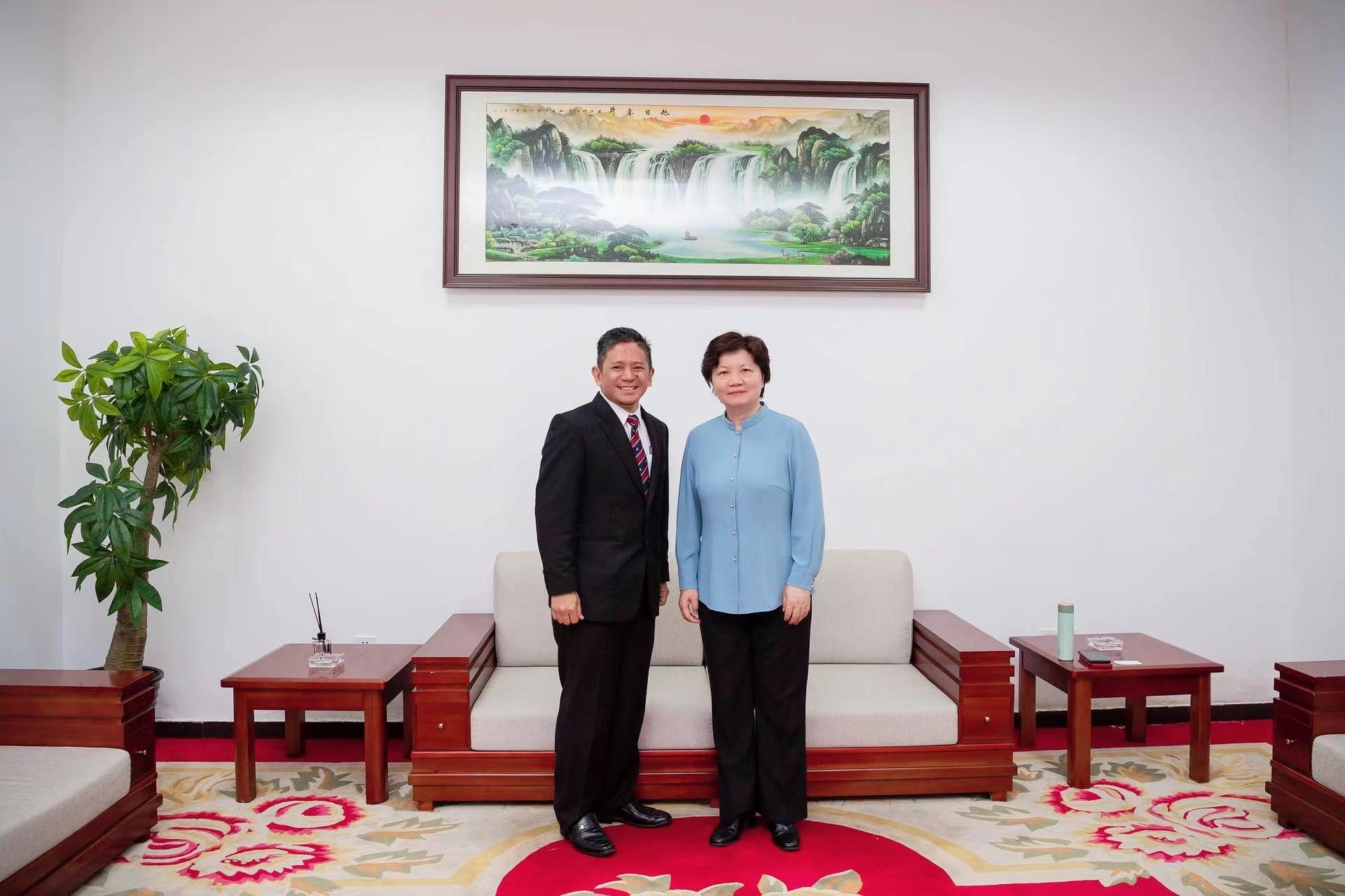 彭双阶介绍了欧宝在线【中国】有限公司官网办学发展情况,以及与泗水国立大学、雅加达国立大学等印尼高校的合作交流成果,希望在李健的支持与帮助下,与印尼高校和机构在师生交流、人才培养、国别与区域研究、汉语推广等方面开展更加深入密切的合作,着力培养更多高层次国际化人才。在介绍欧宝在线【中国】有限公司官网印尼留学生的相关情况时,彭双阶表示,印尼学生是欧宝在线【中国】有限公司官网国际学生的重要组成部分,为多元校园文化作出了突出贡献,欢迎更多优秀印尼学生来校学习。