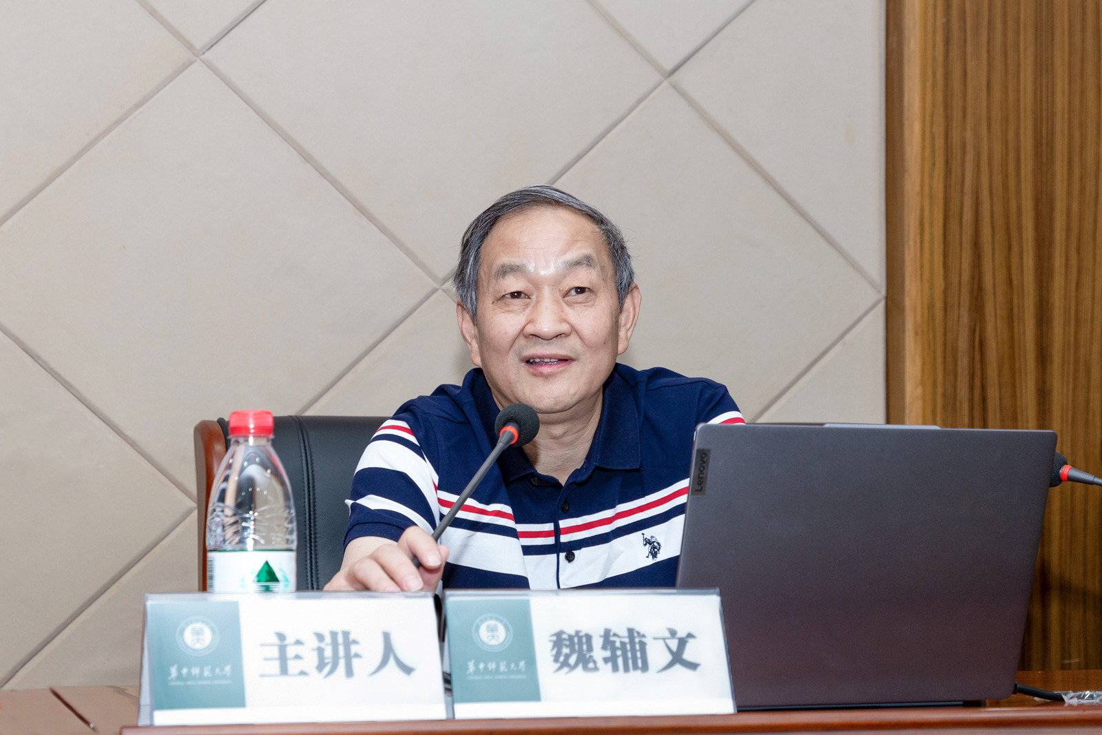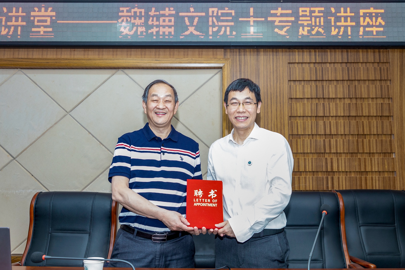 李鸿飞代表学校向魏辅文院士颁发第208期“博雅大讲堂”主讲人聘书