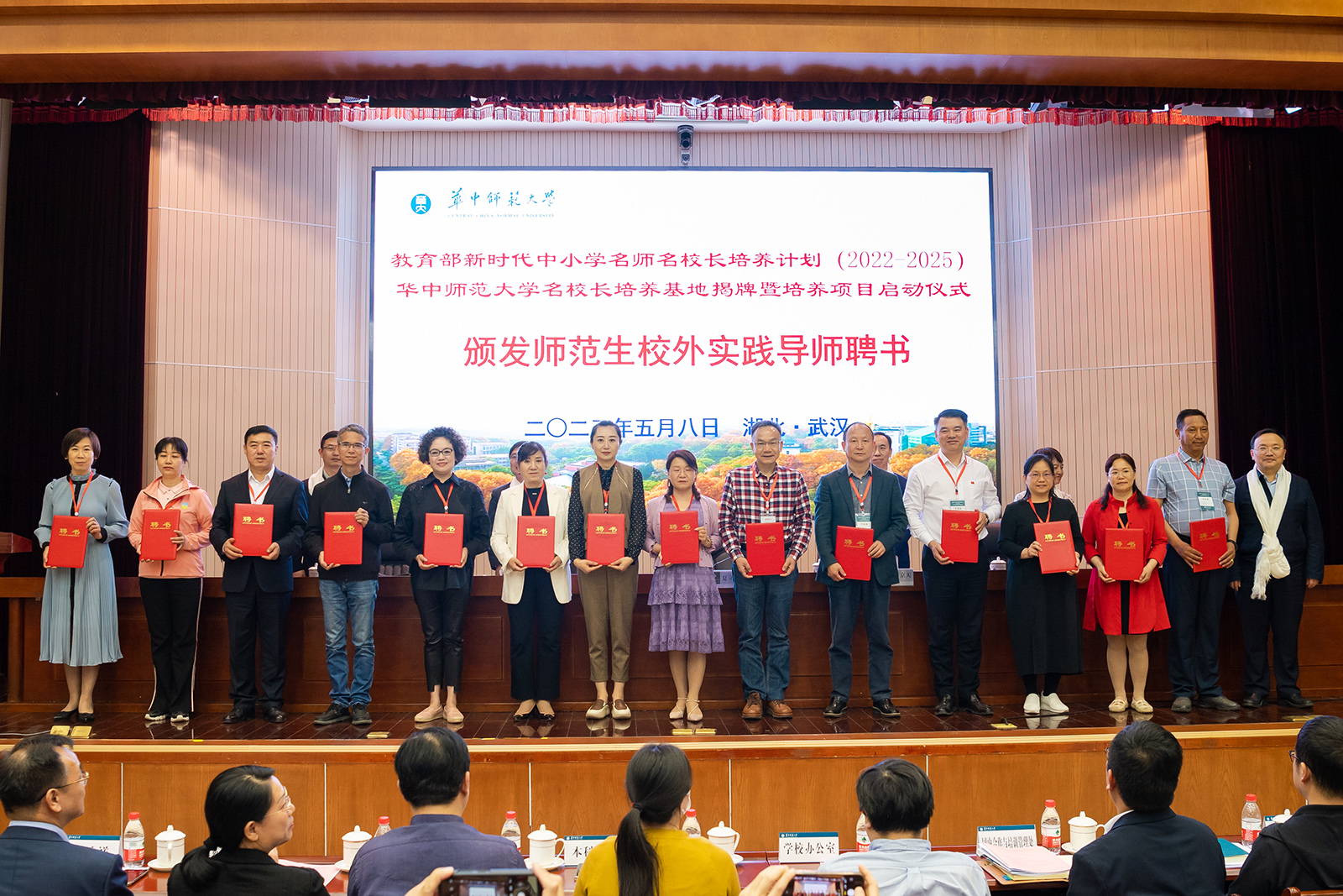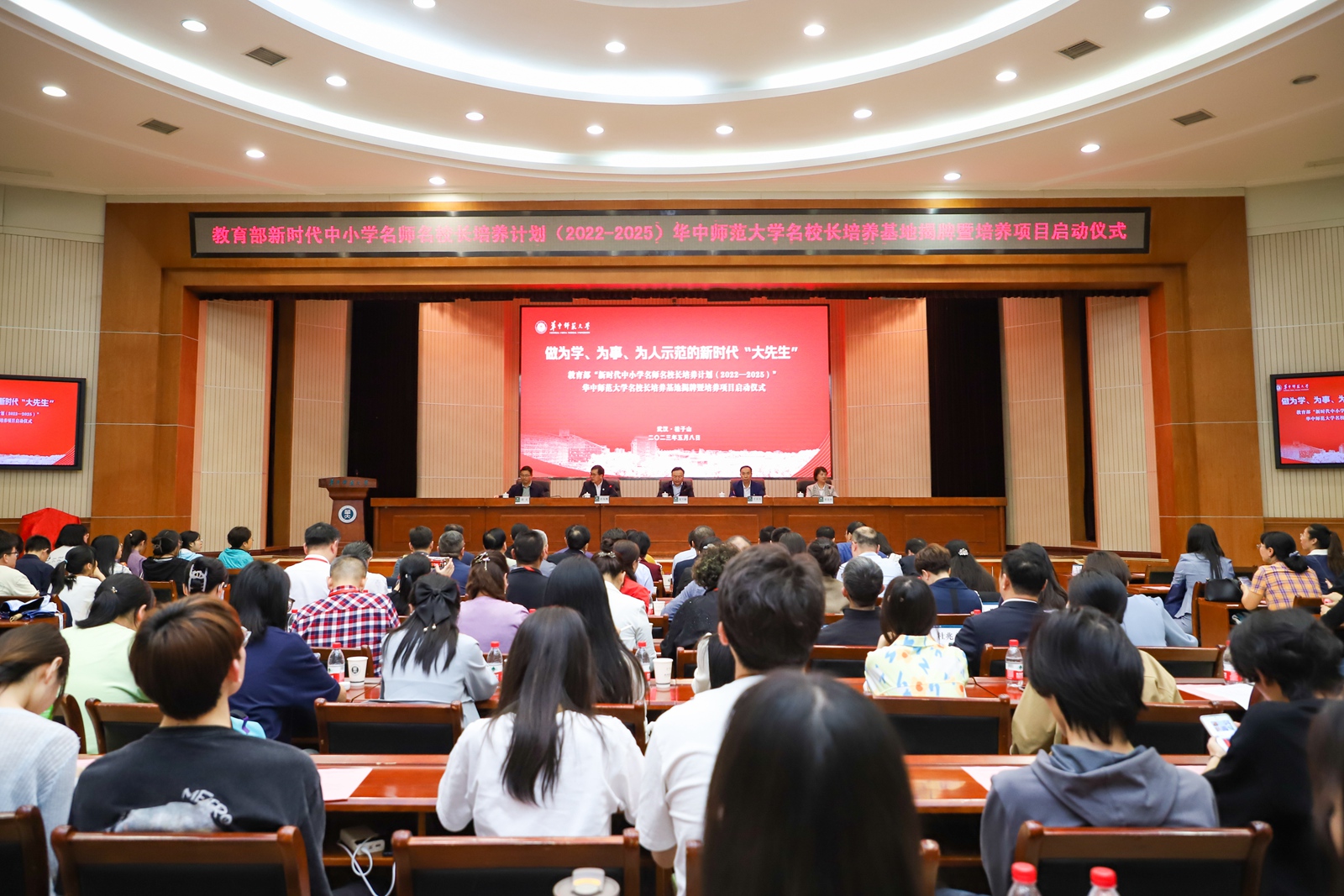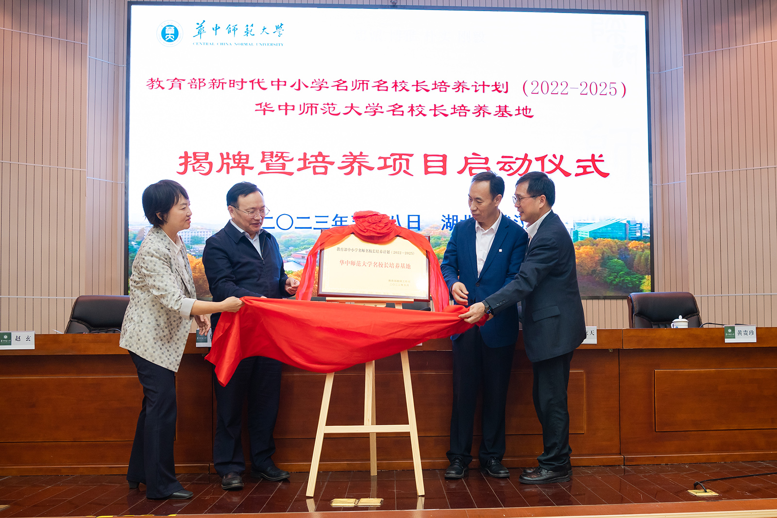 华大在线讯(记者 郝日虹)5月8日,教育部新时代中小学名师名校长培养计划(2022—2025)欧宝在线【中国】有限公司官网名校长培养基地揭牌暨培养项目启动仪式在科学会堂一楼报告厅举行。校党委书记夏立新、国家教育行政学院副院长于京天、教育部全国中小学教师校长培训专家工作组秘书处秘书长黄贵珍、中小学校长和幼儿园园长国家级培训项目管理办公室副主任赵玄出席。启动仪式由副校长任友洲主持。