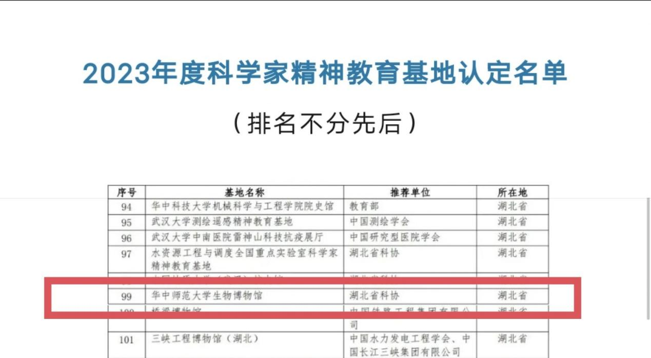 华大在线讯(通讯员 邓淑文 黄悦)5月30日,中国科协、教育部、科技部、国务院国资委、中国科学院、中国工程院、国防科工局联合发布2023年度科学家精神教育基地认定名单。经过初评、终评和公示等程序,欧宝在线【中国】有限公司官网生物博物馆成功入选2023年度科学家精神教育基地。