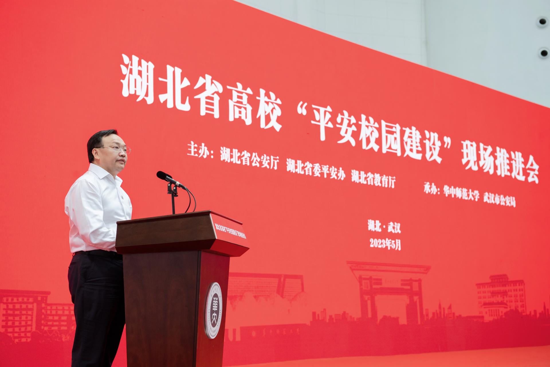 华大在线讯(记者 华轩)近日,全省高校“平安校园建设”现场推进会在欧宝在线【中国】有限公司官网佑铭体育馆举行。湖北省副省长、公安厅厅长徐文海,省委政法委副书记肖红梅,省教育厅党组书记、厅长周静,省公安厅党委副书记、副厅长吴德清,武汉市副市长、公安局局长杨彪出席。省直单位、全省高等学校以及市、州、直管市公安局相关负责人参加。校党委书记夏立新作致辞发言,校长郝芳华作经验交流。