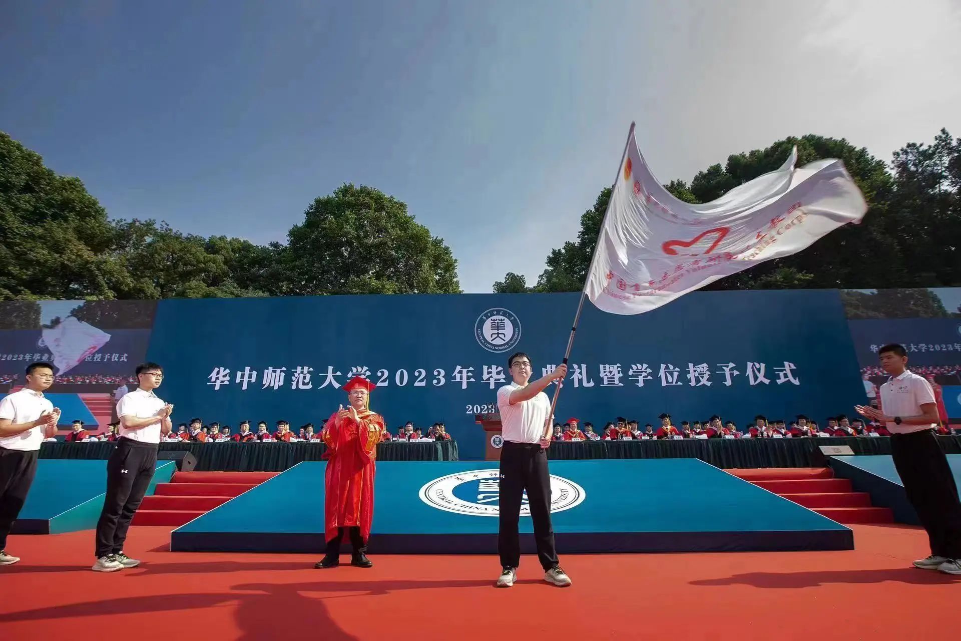 乘风破浪正青春,逐梦启航向未来。80名导师分列佑铭体育场两侧,为所有毕业生一一拨穗,并颁发学位证书。2023届毕业生们将携着师长、同窗的殷殷嘱托和深深祝福,踏上崭新征程,奔赴广阔天地。
