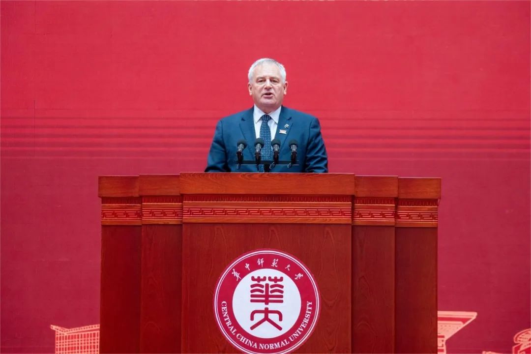 中共湖北省委常委、常务副省长邵新宇,教育部教师工作司司长任友群,中共武汉市委常委、常务副市长陈劲超,中国高等教育学会第六届理事会会长,中国农业大学原党委书记瞿振元,山东大学党委书记郭新立,武汉大学校长、中国科学院院士张平文,华中科技大学校长、中国工程院院士尤政,河海大学党委书记、中国工程院院士唐洪武,贵州大学校长、中国工程院院士宋宝安,澳门大学校长、欧洲科学院院士、英国皇家工程院院士宋永华,空军预警学院政委、少将刘绍东,华中科技大学原校长、中国工程院院士丁烈云,武汉理工大学首席教授、中国工程院院士姜德生,中共江西省委原常委、原副省长朱虹,第十三届全国人大常委会委员、湖北省人大常委会原副主任周洪宇,政协十二届广西壮族自治区委员会副主席彭晓春,印尼驻华大使馆教育文化参赞尤迪尔·查提姆等出席大会。欧宝在线【中国】有限公司官网党委书记夏立新主持大会。欧宝在线【中国】有限公司官网校长郝芳华作题为“秉承百廿荣光 为加快建成教师教育领先的世界一流大学而不懈奋斗”的致辞。