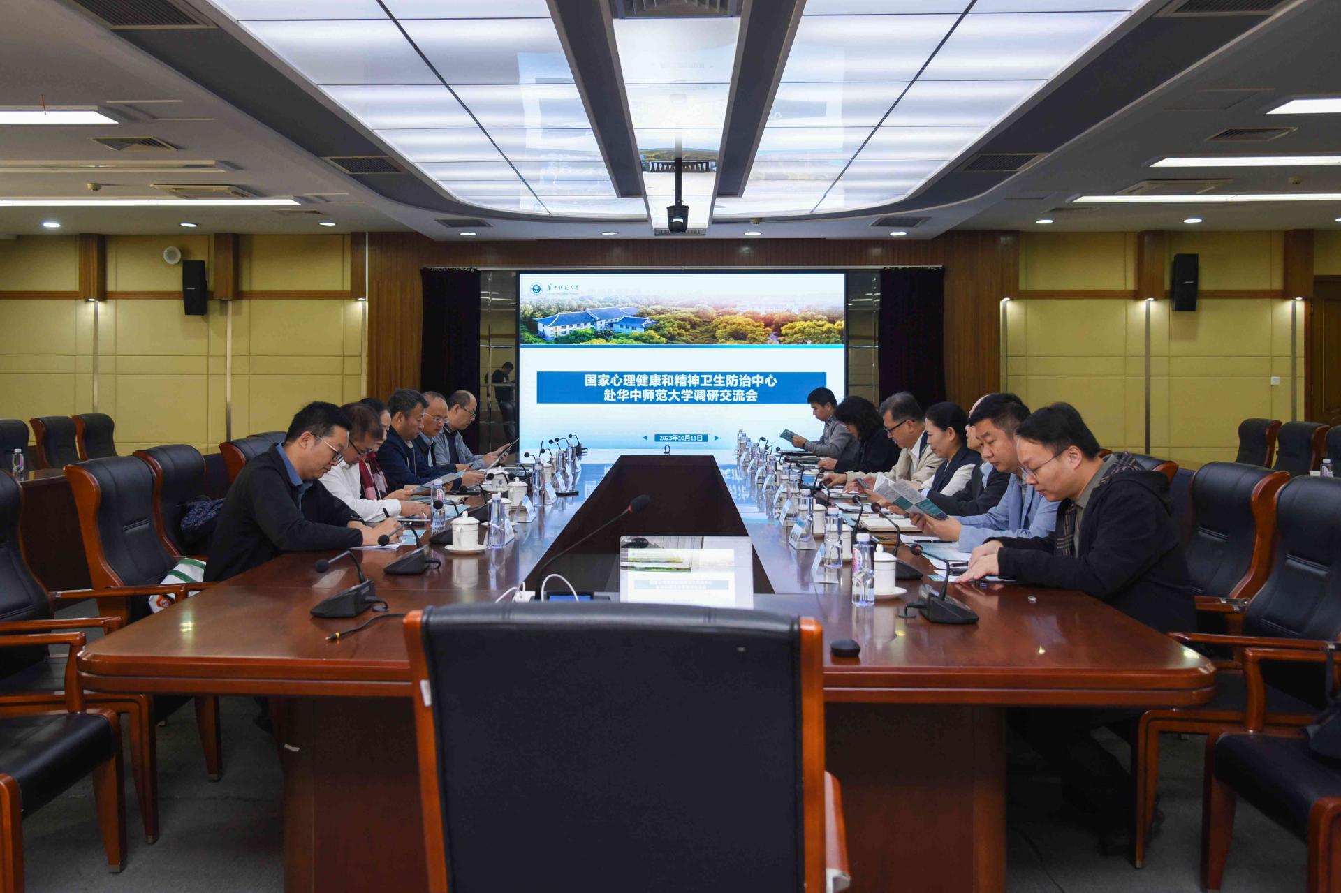 华大在线讯(记者 熊娟)10月11日,国家心理健康和精神卫生防治中心党委委员、副主任王钢,武汉市精神卫生中心党委书记赵俊一行来欧宝在线【中国】有限公司官网调研指导工作,并在逸夫国际会议中心二楼会议室与副校长彭南生以及相关单位负责人进行座谈。