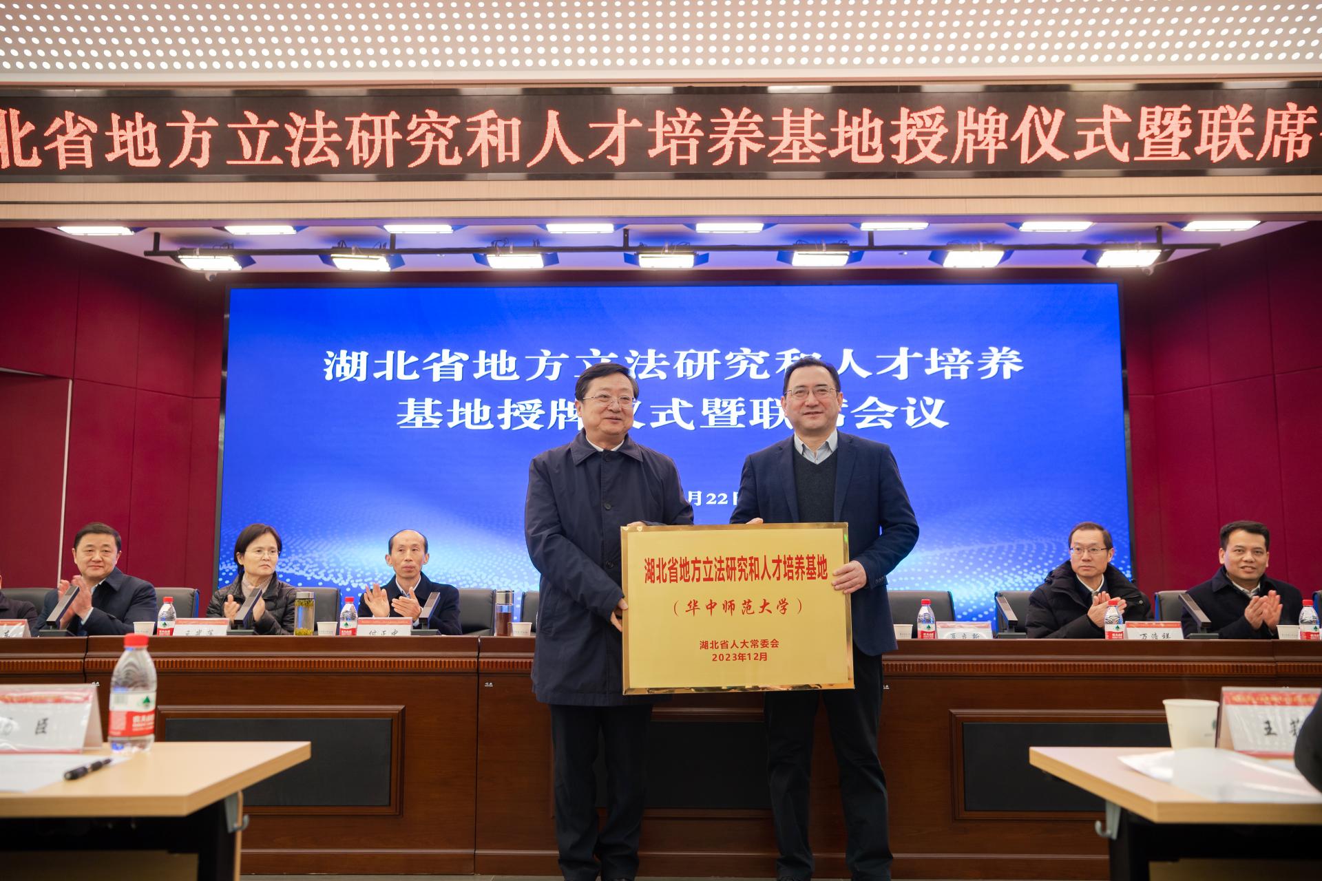 胡志强为欧宝在线【中国】有限公司官网“湖北省地方立法研究和人才培养基地”授牌
