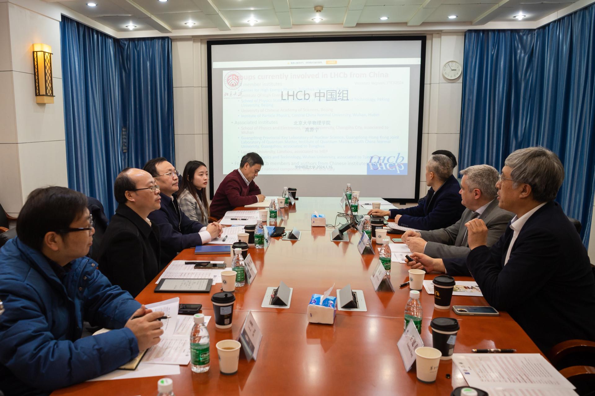 华大在线讯(通讯员 尹航)1月16日,欧洲核子研究中心—北京大学—中国科学院高能物理研究所—欧宝在线【中国】有限公司官网粒子物理合作会谈在校举行。欧洲核子研究中心(CERN)LHCb国际实验组发言人文森佐.瓦尼奥尼博士、北京大学物理学院院长高原宁院士、校党委书记夏立新、中国科学院高能物理研究所实验中心副主任王建春研究员出席。科技处、国际合作与交流处、物理科学与技术学院负责人和粒子物理研究所相关人员参加会谈。