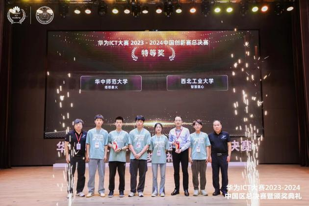 作为全国普通高校学科竞赛榜单项目、联合国教科文组织全球技能学院的关键伙伴旗舰项目,华为ICT大赛分为实践赛和创新赛,其中创新赛主要考察学生对AI等ICT技术的综合应用和创新能力。本次总决赛对比赛方式进行了创新,首次采用现场“演示+答辩”方式进行。比赛现场,参赛队伍按照主要使用的ICT技术进行分组比拼,评委通过现场巡馆,考察作品的创新性、系统复杂性/技术复合性、社会效益、功能完备性,并综合参赛队伍的答辩表现进行评分,最终评选出特、一、二、三等奖,其中排名前12的队伍入围今年5月在深圳举办的全球总决赛。