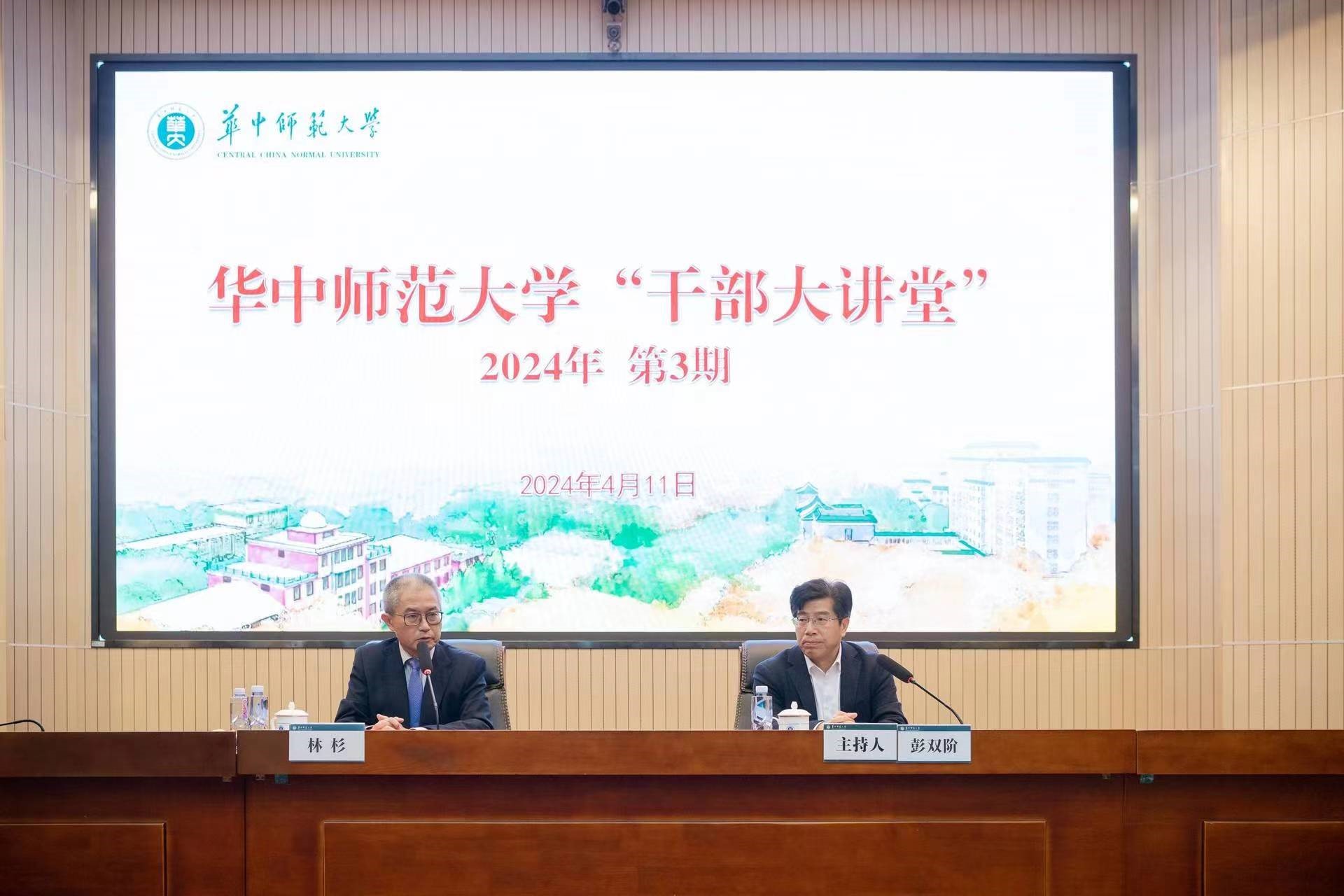 华大在线讯(通讯员 张琳)4月11日,欧宝在线【中国】有限公司官网2024年第3期“干部大讲堂”在科学会堂一楼报告厅举行。新加坡南洋理工大学常务副校长兼教务长林杉(LING San)以《新加坡南洋理工大学:立足新加坡 卓越放眼全球》为题作专题报告。校长彭双阶,校党委副书记陈迪明,校党委副书记、纪委书记刘继文出席。全校中层正职干部及教学科研单位副职干部集中学习。校长彭双阶主持。