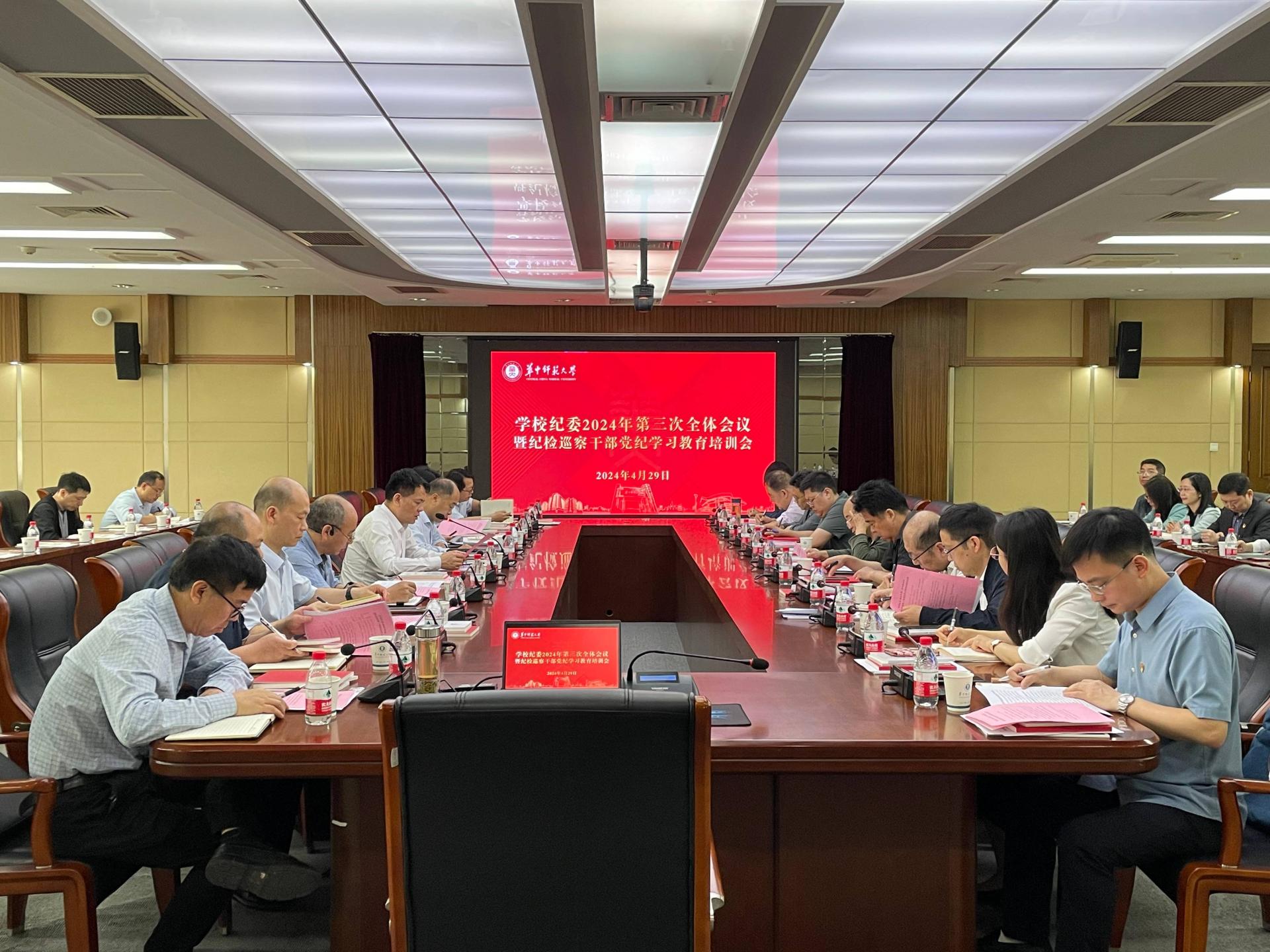 华大在线讯(通讯员 涂敏)4月29日,学校纪委召开2024年第三次全体会议暨纪检巡察干部党纪学习教育培训会。会议传达学习了习近平总书记关于开展党纪学习教育的重要讲话和重要指示精神,推动纪检巡察干部带头学纪、模范守纪,以实际行动践行“两个维护”。校党委副书记、纪委书记刘继文主持会议并为纪检干部上廉政教育党课。