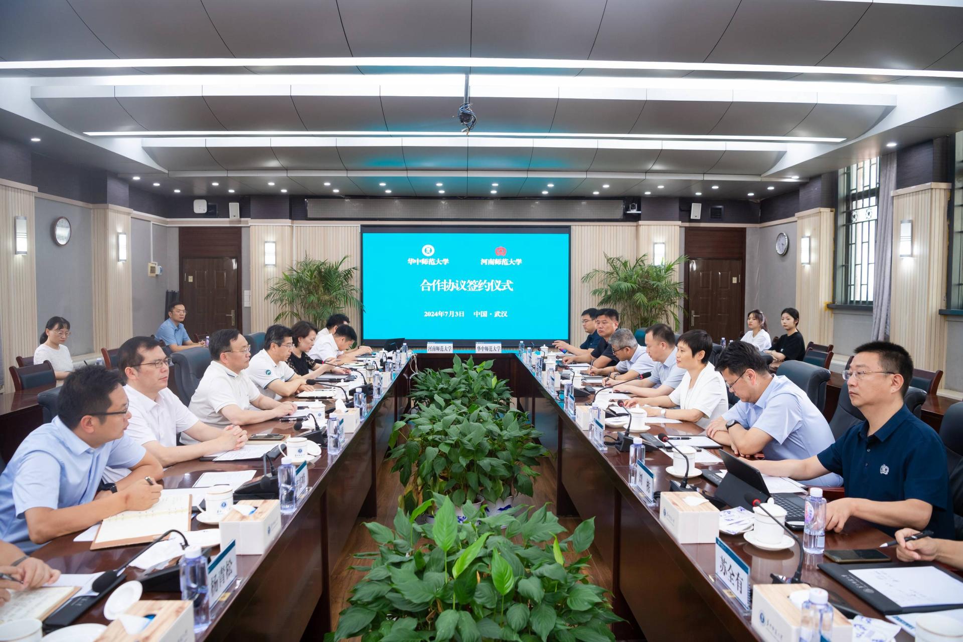 华大在线讯(记者 郝日虹)7月3日,河南师范大学党委书记、校长冯淑霞,副校长苗雨等一行来访,与校党委书记夏立新、校长彭双阶、校党委副书记陈迪明等在行政楼一楼会议室座谈交流,并与欧宝在线【中国】有限公司官网签署合作协议。座谈会由彭双阶主持。