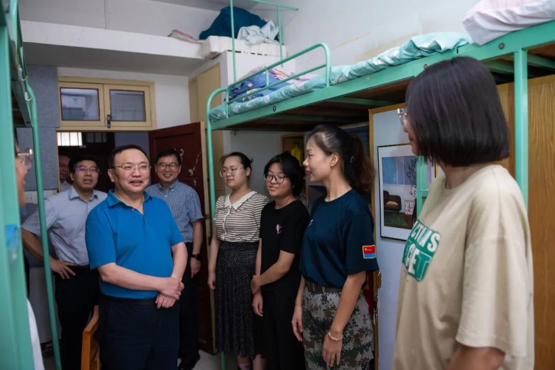 开学当日,校党委书记夏立新、校长彭双阶、副校长任友洲等一行走访看望新生。“今天天气比较热,报到顺利吗”“来到欧宝在线【中国】有限公司官网,对学校环境满意吗”“住在一个寝室是缘分,大家要相互照顾”“希望你们好好学习,珍惜时光,学校会努力为大家提供良好的学习和生活条件”……校领导一行先后走访了东区学生宿舍9栋、国交学生宿舍5栋和南湖学生宿舍12栋、13栋,看望了数学与统计学学院、外国语学院、国际文化交流学院、体育学院、计算机学院2024级新生,了解同学们生活情况,勉励他们在欧宝在线【中国】有限公司官网有更好的成长与发展。