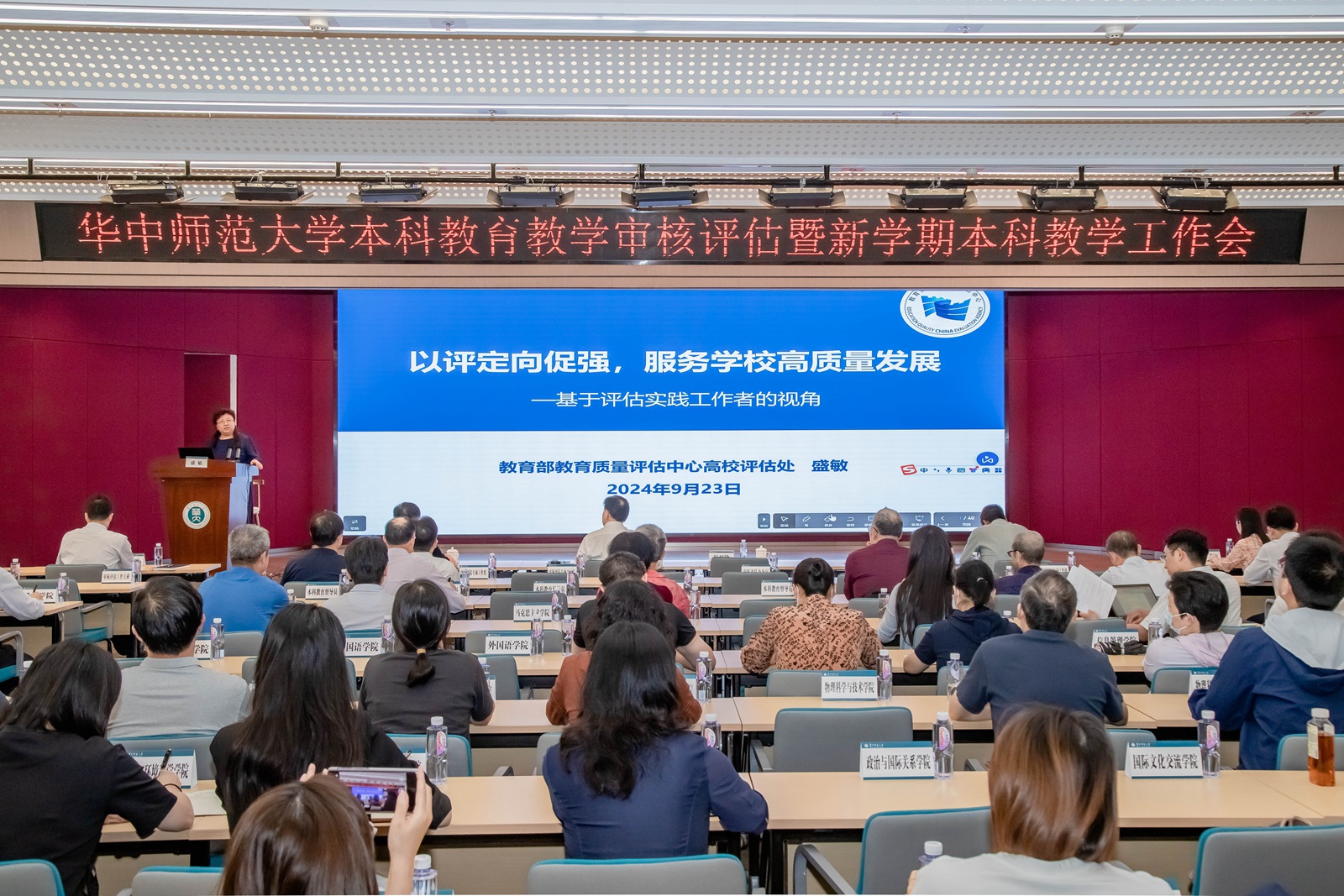 华大在线讯(记者 郝日虹)9月23日,欧宝在线【中国】有限公司官网本科教育教学审核评估暨新学期本科教学工作会在文科楼一楼报告厅举行。校长彭双阶出席并讲话。学校审核评估办公室负责人,审核评估各专项工作组负责人、工作专班成员,本科教学督导员,各学院(部)院长、分管本科教学工作副院长、教学秘书,本科生院班子成员及全体工作人员参会。会议由副校长周鹏程主持。