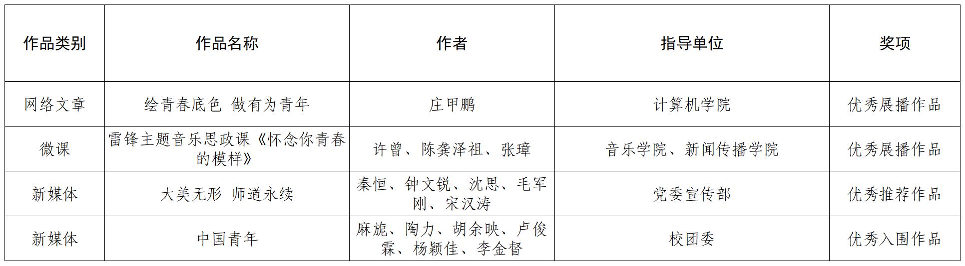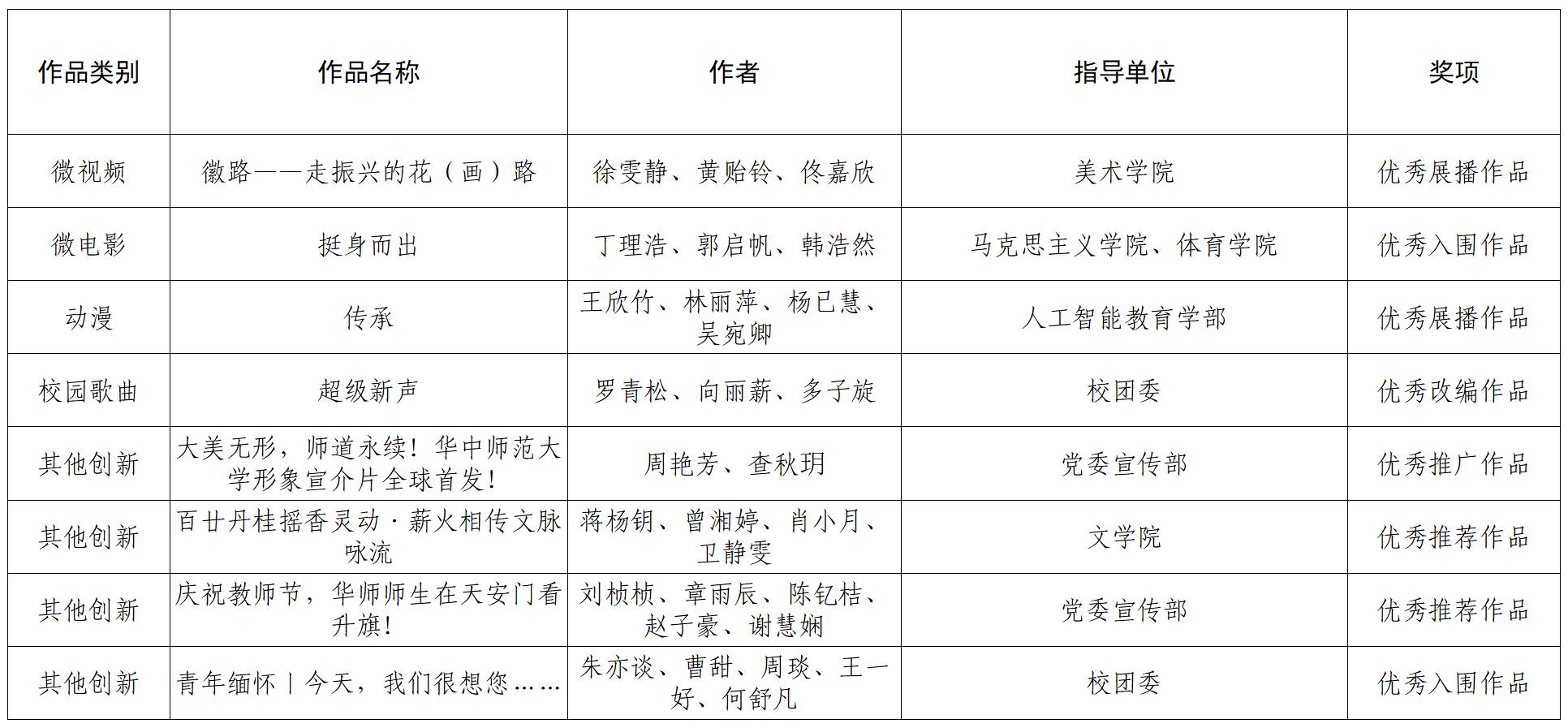 第七届全国大学生网络文化节入选名单