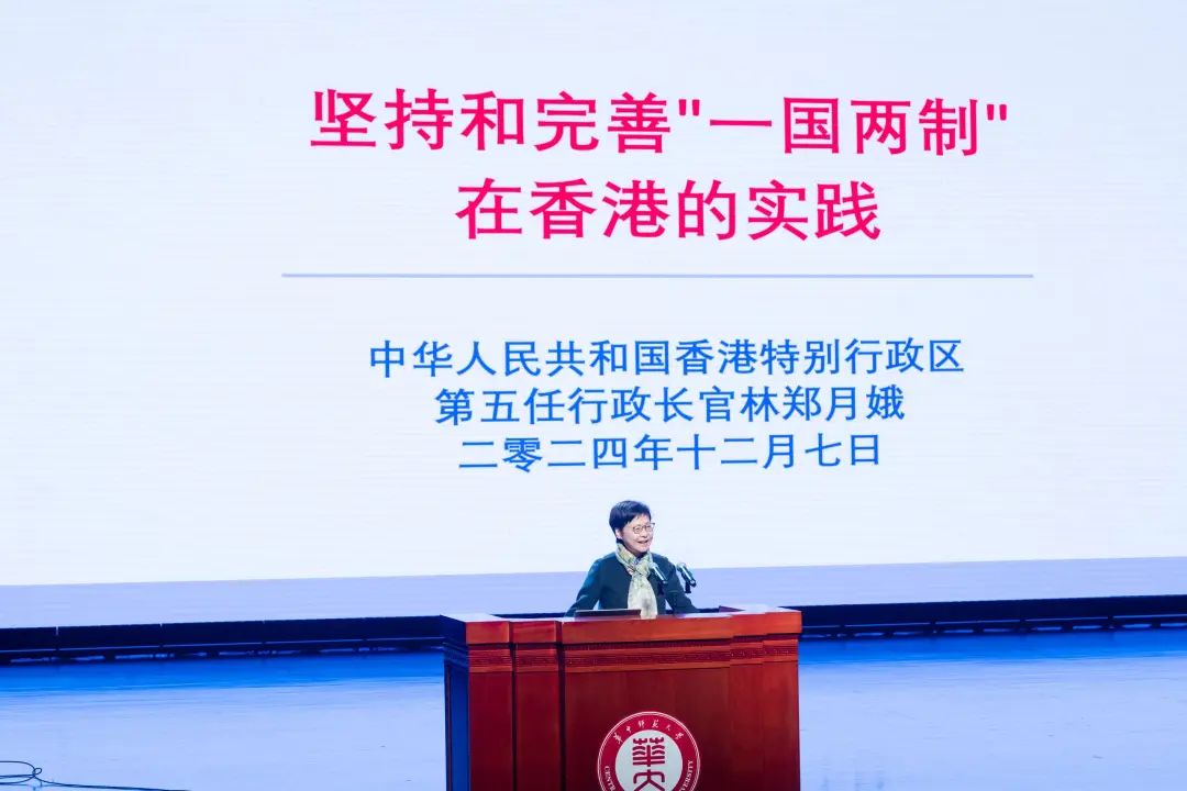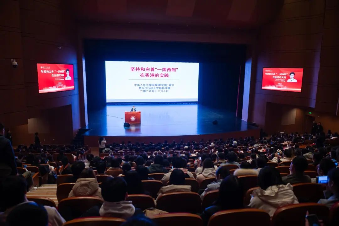 林郑月娥女士作题为《坚持和完善“一国两制”在香港的实践》的主题演讲,并与现场师生交流