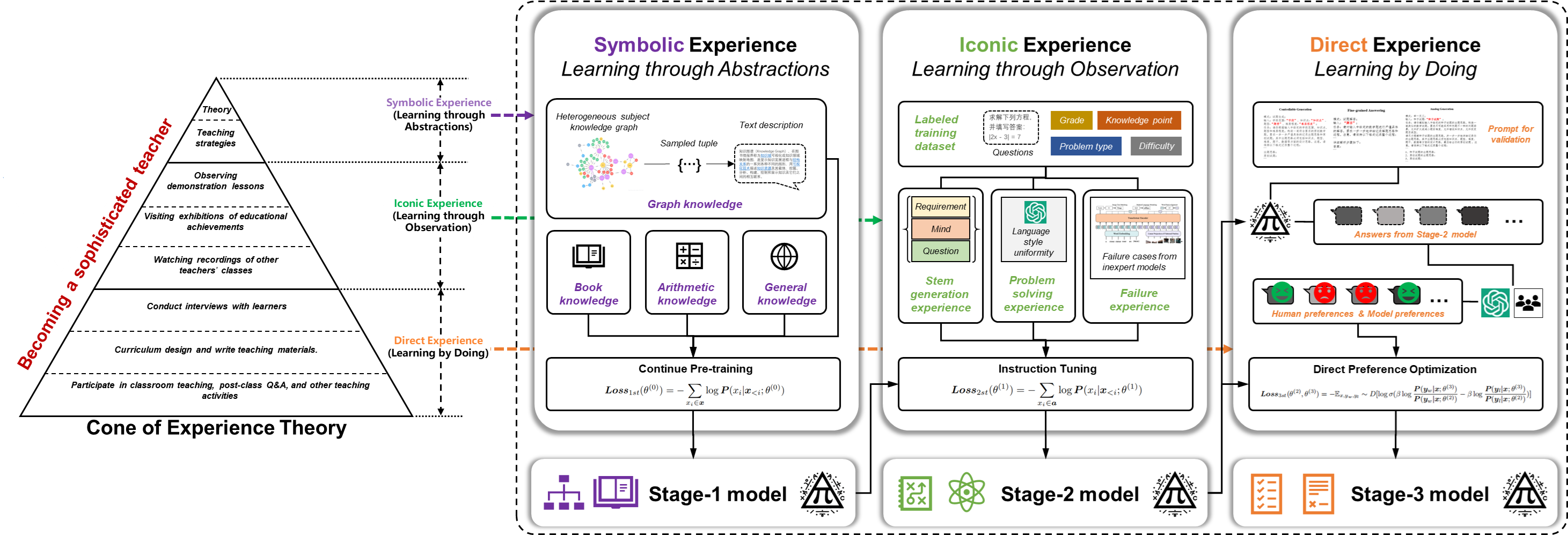 华大在线讯(通讯员 万仟)近日,人工智能教育学部刘三女牙教授团队在教育大模型研究方向取得重要进展,创新性提出基于经典教育学理论“经验之塔”的教育大模型塔式构建法,在此基础上设计了多智能体自主驱动的教学场景数据合成框架,为促进教育大模型创新发展提供了一种新颖且有效的技术途径。此外,研究团队成功获批本年度国家自然科学基金重点项目“面向智慧教育的多模态模型构建方法”。