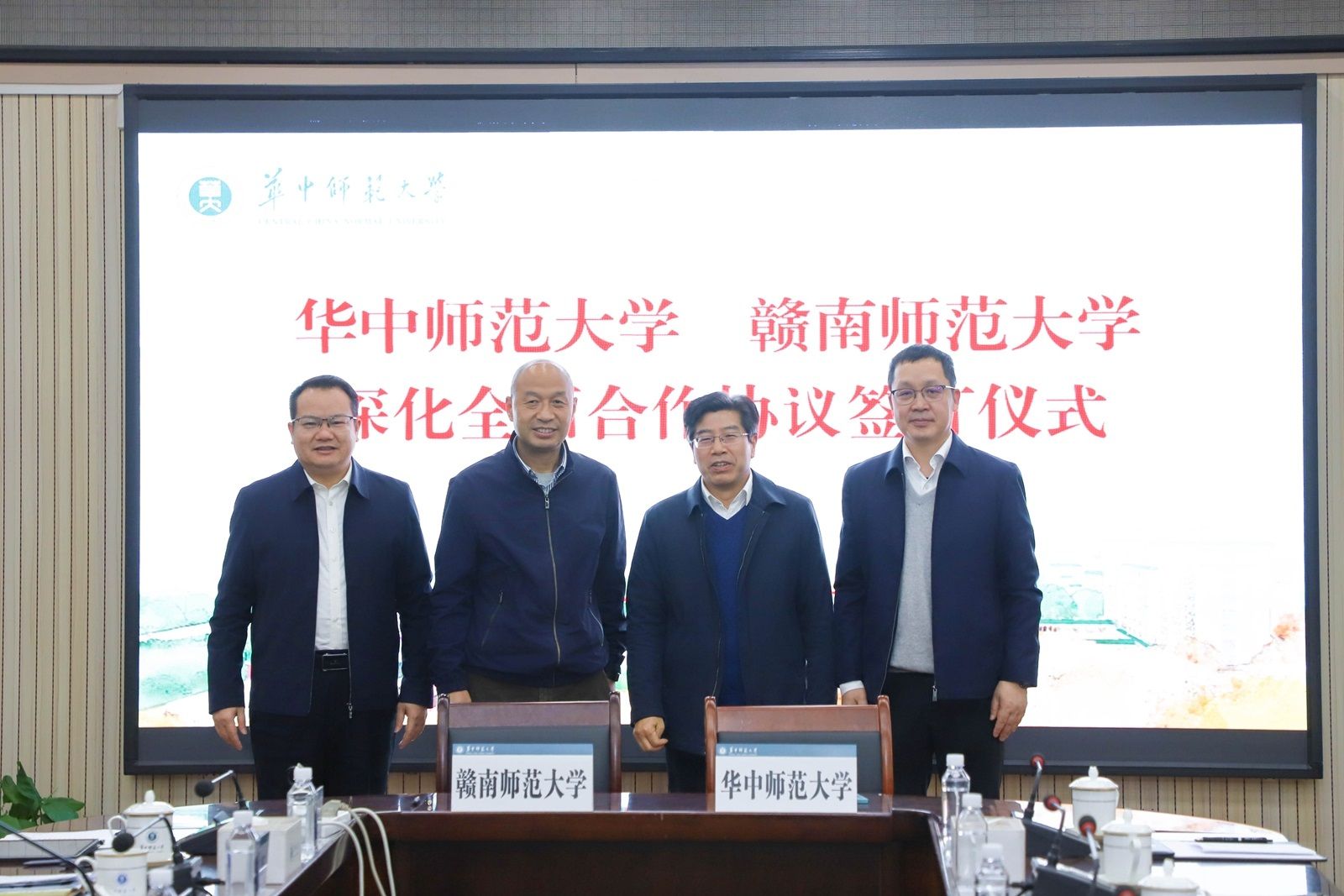 华大在线讯(通讯员 程浩)3月28日,赣南师范大学党委副书记、校长陈义旺,副校长肖笃森一行来校访问交流,与校长彭双阶、副校长刘三女牙等在行政楼一楼会议室座谈。会上,欧宝在线【中国】有限公司官网与赣南师范大学签署深化全面合作协议。