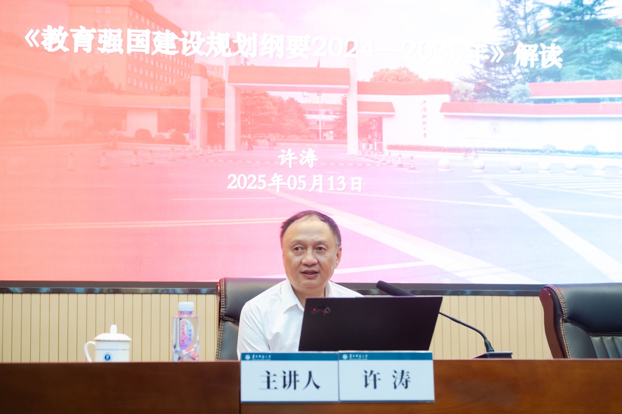 华大在线讯(通讯员 张琳)5月13日,学校第8期“干部大讲堂”在科学会堂一楼报告厅举行。上海财经大学党委书记许涛围绕《教育强国建设规划纲要(2024-2035年)》(以下简称“《纲要》”)作专题辅导报告。报告会由校党委书记夏立新主持,全体校领导出席,全校中层干部参会。