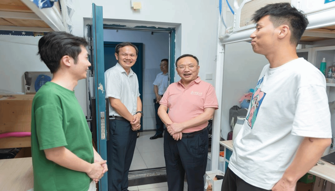 夏立新一行先后前往东区5栋218室、元宝山3栋136室,走访看望外国语学院本科毕业生与人工智能教育学部硕士毕业生。夏立新详细了解了同学们的离校安排、毕业去向以及未来发展规划等情况,认真倾听了大家对于学校建设发展的意见建议。夏立新表示,希望大家在未来的人生之路上一帆风顺、鹏程万里,无论未来身在何处,都别忘了常回来看看,母校的大门永远为大家敞开。
