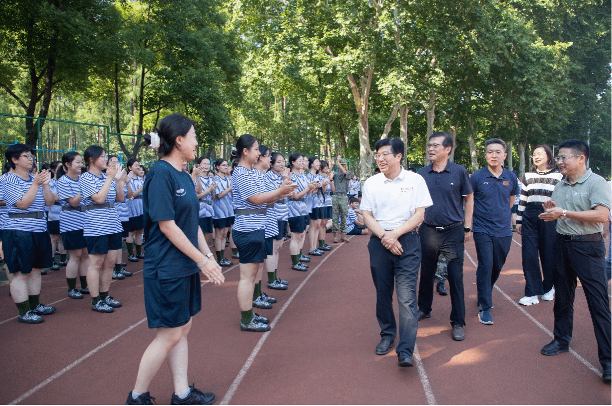 华大在线讯(通讯员 胡一心 李雪琴)近日,校党委书记夏立新、校长彭双阶、校党委副书记陈迪明前往佑铭体育场、南湖田径场看望慰问2025级军训学员、教官及参训干部,观看军训队列训练,与现场带训教官、参训学员、政工干部沟通交流,详细了解军训进度、训练科目、参训人数及后勤保障等情况。