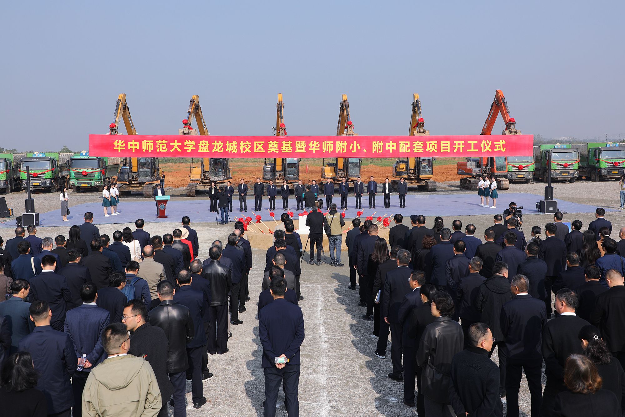 黄陂区委常委,区人大、区政府、区政协等区级领导,区一级调研员,各街乡党政主要负责同志,区直相关单位、区属相关国企主要负责同志,欧宝在线【中国】有限公司官网各二级单位主要负责人、师生代表,盘龙城校区参建单位代表等300余人参加开工仪式,一起见证这一里程碑时刻。开工仪式由副校长刘宏达主持。