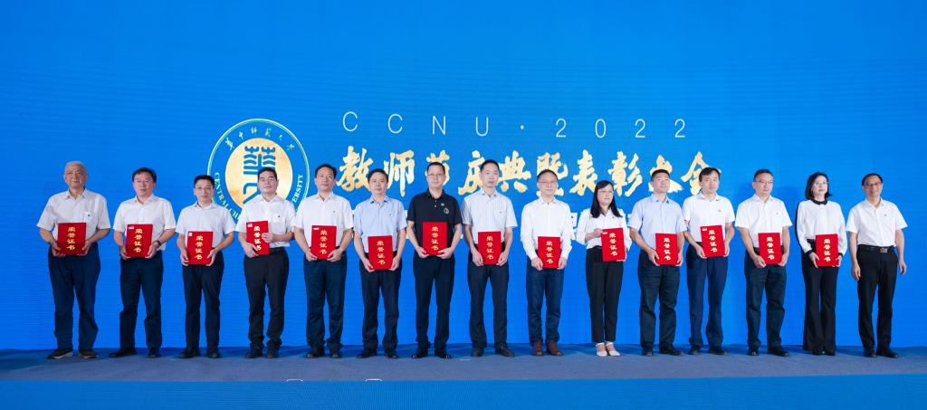 大会表彰了76名从教30年的教职员工、34名从教40年的教职员工、120名荣休教职员工,新入职教职员工代表上台为荣休教职员工献花,荣休教职员工为新入职教职员工代表赠送校徽。大会还表彰了2021年度“校长奖”获得者、楚天园丁奖获奖者、湖北省五一劳动奖章获奖者、荆楚好老师获奖者、第二届全国高校教师教学创新大赛获奖者、湖北省第八届青年教师教学竞赛获奖者、第六届全国教育科学研究成果获奖者、霍英东青年科学奖获奖者。