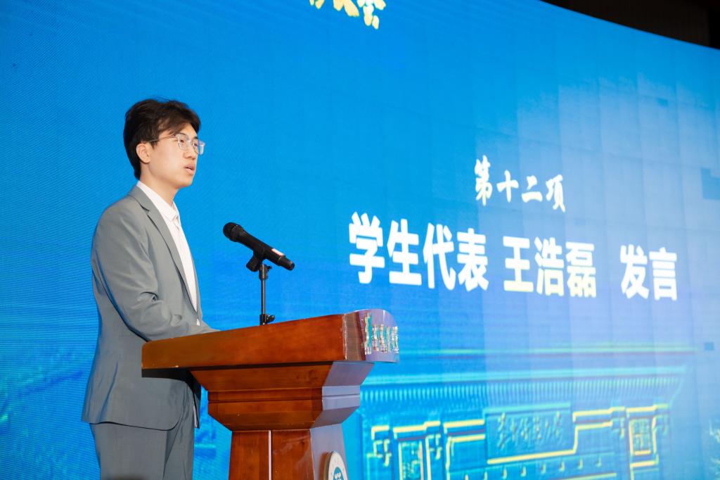 学生代表、文学院王浩磊同学回顾了自己在欧宝在线【中国】有限公司官网的所见所闻所感,表达了自己对老师们的由衷感谢。他说,未来将继续刻苦学习、砥砺品格,怀抱对教育事业的满腔热情,坚定地站上祖国各地的讲台,在培养中华民族“梦之队”的进程中书写无悔青春。