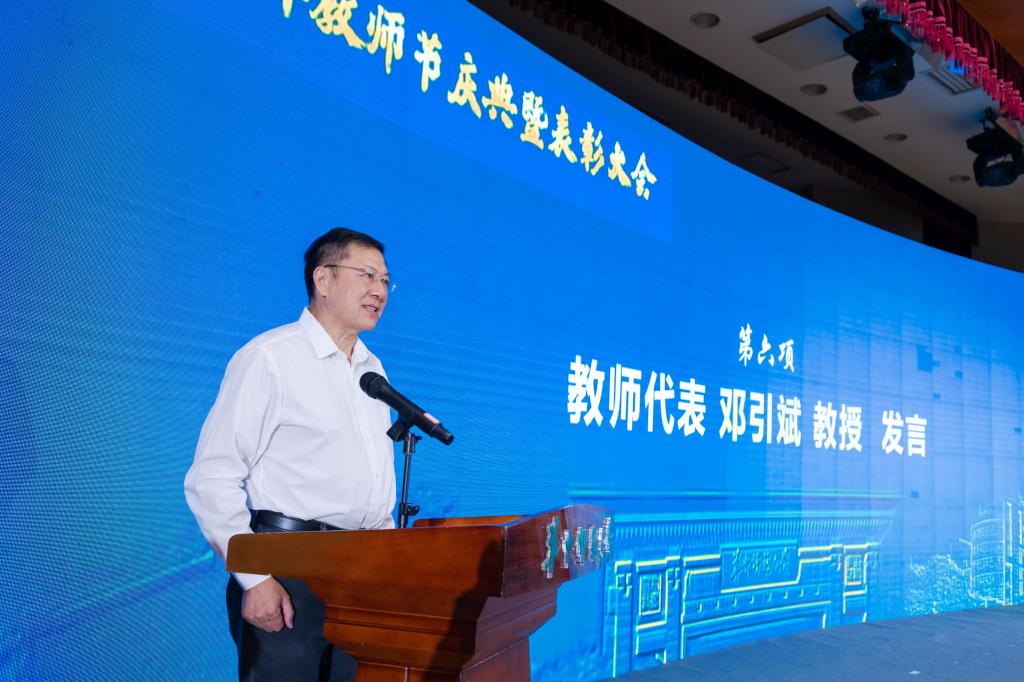 获奖教师代表、人工智能教育学部刘三女牙教授向老师、同事、学校、祖国表达了衷心感谢,并呼吁大家一起做“了不起”的教师,淡泊名利,扎根教育,深耕课堂,甘为人梯;成为“了不起”的老师,把自己活成一束光,穿透所有的黑暗,照亮每一个角落,温暖每一位孩子;汇聚成“一支了不起的力量”,践行“人类灵魂工程师”的使命,为党育人,为国育才,为民族育希望之花朵!