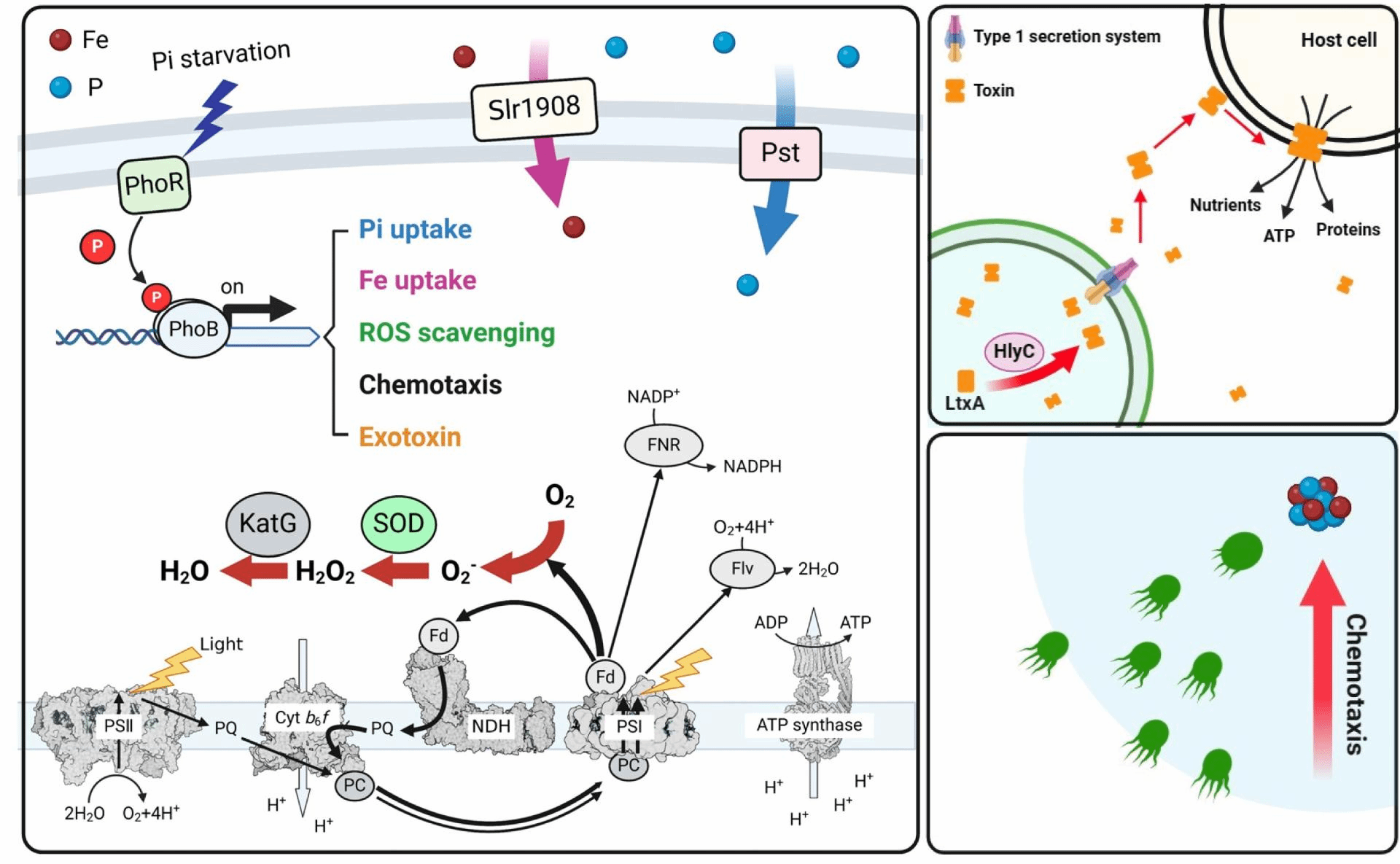 图1. PhoB介导的蓝藻铁磷共同限制适应机制模型